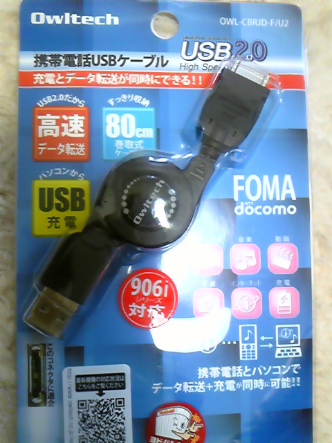 以前使っていたケーブルは何故か使えなかったので仕方なく新調しました。これでパソコンにためてあるMP3を携帯に入れることや、外出先でのインターネットが出来るようになりました。